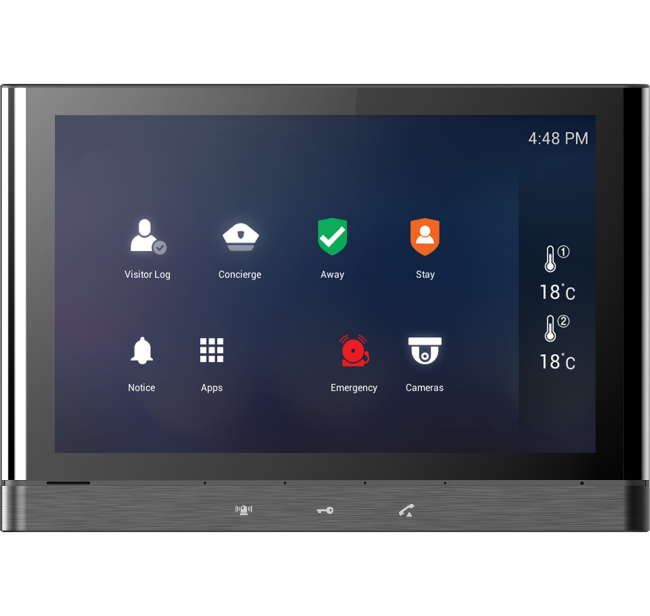 The SmartONE solution enables the direct integration of smoke and leak detection devices. Residents will receive alarm notices on their wall pad and mobile app, and the concierge will also be notified of any emergencies.